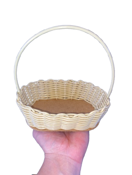 Feitas em material sintético trançado com base em MDF cru, essas cestinhas são leves, resistentes e ideais para lembrancinhas, decoração de festas, chás de bebê, casamentos, aniversários, cestas de café da manhã e muito mais.