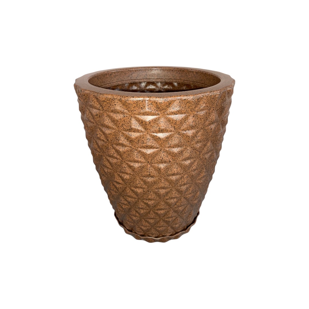 Com furos de drenagem já incorporados e prato acoplado, garante o escoamento adequado da água, ajudando a manter suas plantas sempre saudáveis. Seu design moderno com textura em diamante traz sofisticação e combina facilmente com diferentes estilos de decoração.