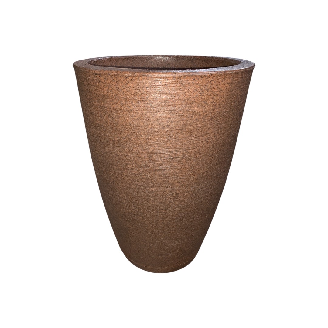 Com design moderno em formato de cone bojo escovado, o vaso une beleza, resistência e leveza, permitindo fácil manuseio e transporte sem perder a sofisticação. Sua composição garante durabilidade mesmo em ambientes externos, suportando diferentes climas sem rachar, desbotar ou perder a cor. Além disso, não interfere na qualidade da terra nem no desenvolvimento das plantas, proporcionando um cultivo saudável.